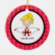 ¡Este es un adorable adorno navideño para esa animadora en tu vida! Es un adorable porrista de porristas. Lleva un uniforme rojo y blanco. El fondo es rojo con círculos blancos. Está saltando al aire haciendo un toque de dedos. Echa un vistazo a los muchos otros diseños y colores de esta línea. ¡Apreciar este mantenimiento por muchos, muchos años! ©JW Ilustraciones
