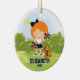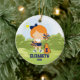 Personalice el Naranja Cute Dated y el animador de pelo rojo azul animando Chica el ornamento de Navidad en un pasto con fondo de árbol. El adorno de Cheer incluye una adorable animadora sosteniendo pompas con un megáfono. Un regalo de Navidades Maravillosos seguro que será valorado por muchos años por venir.