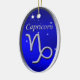 Un símbolo vectorial de Capricornio en un cielo estrellado, diseñado por la artista/diseñadora Charmaine Paulson en un adorno navideño. El ornamento tiene el texto Capricorn y una plantilla de texto en la parte posterior para su personalización. Nota: Capricorn Dic. 22-Ene. 19