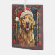 Ornamento navideño perro de Golden Retriever en modo vidriera.