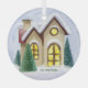 Este tranquilizante adorno navideño de invierno de vidrio Wonderland es muy relajante de ver. Una hermosa casa de noche enclavada entre vibrantes árboles de abetos Fraser en medio de la nieve. Cambie el nombre de la familia a su otro nombre o a cualquier texto que desee.