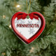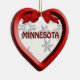 Un diseño gráfico de copos de nieve en un marco rojo estilo 3D sobre una forma cardíaca adorno navideño de Minnesota. El ornamento tiene plantillas de texto para su personalización. ©2012charmainepaulson
