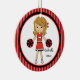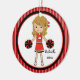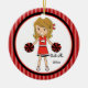 ¡Este es un adorable adorno navideño para esa animadora en tu vida! Es una adorable animadora con el pelo castaño largo y un arco rojo en el pelo. Ella tiene dos pompones en sus manos. Lleva puesto un uniforme rojo con blanco y negro. Ella está puesta en un gran círculo interior blanco delineado en rojo y negro. El fondo es de rayas rojas claras y oscuras. Echa un vistazo a los muchos otros diseños y colores de esta línea. ¡Apreciar este mantenimiento por muchos, muchos años! © clip artesanal