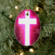Ornamento navideño de la Cruz rosa brillante Hermoso adorno cristiano
