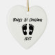 Silueta blanca y negra de los primeros pies del bebéOrnamento cerámico ornamento de la cerámica. Personaliza con nombre y año.