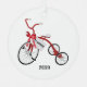 Ornamento navideño de los Chicas de triciclo rojo. Tricycle por Claudine Boerner. Acento usado en dibujo liberado bajo licencia CC0.