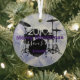 Ornamento navideño para un tamborilero. Hermoso fondo morado profundo, pero suave telón de fondo te da la sensación de ver un show en vivo. El gráfico del tambor se ve muy bien con Feliz Navidad, el año y el nombre del receptor del regalo. Diseñado por HAMbyWhiteGlove.