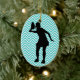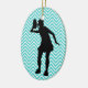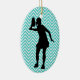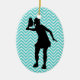 Patrón de chevron azul y negro personalizado en forma de silueta ovalada de tenis jugador de navidad adorno de árbol para chicas.