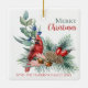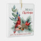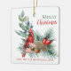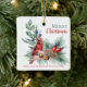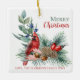 Cardenal acuarela alegre adorno navideño. Hermoso cardenal acuarela encaramado sobre una rama de pino con pinos, bayas rojas y bellotas. Los campos de nombre y texto son personalizables con su nombre y saludo, si lo desea. Puede comprar regalos para Navidades más personalizados en la colección de regalos para Navidades personalizados en la bella tienda Resumen.