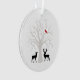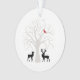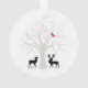 Ornamento navideño de invierno con cardenal rojo, ciervo y árbol de invierno.