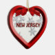 Un diseño gráfico de copos de nieve en un marco rojo estilo 3D sobre un corazón que forma el adorno navideño de Nueva Jersey. El ornamento tiene plantillas de texto para su personalización. ©2012charmainepaulson