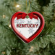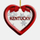 Un diseño gráfico de copos de nieve en un marco rojo estilo 3D en forma de corazón en el adorno navideño de Kentucky. El ornamento tiene plantillas de texto para su personalización. ©2012charmainepaulson