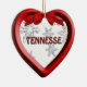 Un diseño gráfico de copos de nieve en un marco rojo estilo 3D sobre un corazón forma el adorno navideño tennessee. El ornamento tiene plantillas de texto para su personalización. ©2012charmainepaulson
