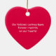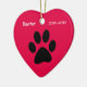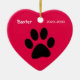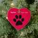 A tu amigo especial se le extrañará en los Navidades, pero puedes mantenerla viva o su memoria con este maravilloso adorno de Navidad conmemorativo para perros mascotas. El diseño se presenta en rojo sobre un adorno de forma cardíaca con una huella de pata gigante en el centro. Puedes personalizar el diseño con el nombre de tu perro y los años. En la parte posterior del corazón están las palabras "Nuestros amados caninos dejan para siempre huellas en nuestros corazones". Un adorable adorno navideño conmemorativo para el amante de los animales mascotas y especialmente para el amante de los perros. Derechos de autor ornamentsbyhenis