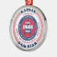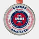 Muestra el orgullo de tu estado esta temporada navideña con este único adorno navideño dedicado a Kansas, el estado número 34. Tiene colores patrióticos rojos, blancos y azules con un diseño de tipografía circular sobre fondo blanco. El texto incluye hechos sobre el estado, como su nombre, capital, abreviatura de estado, región, zona horaria, coordenadas geográficas, el año de su condición de estado y el nombre de su residente. Es un gran regalo para los que quieren celebrar su estado o para los que sienten nostalgia por su estado natal.