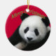 Ornamento de Navidad Gigante Panda. Este adorno navideño está decorado de un lado con una fotografía de un Panda gigante y las palabras "Feliz Navidad", y del otro con Santa Claus y las palabras "Feliz Navidad".