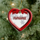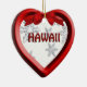 Un diseño gráfico de copos de nieve en un marco rojo estilo 3D en un corazón que forma el adorno navideño hawaiano. El ornamento tiene plantillas de texto para su personalización. ©2012charmainepaulson