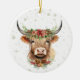 Trae encanto rústico de vacaciones a tu árbol con este adorno de cerámica de Navidades Highland Cow. Con una adorable vaca Highland de estilo festivo, este adorno le da un toque acogedor a su decoración de temporada. Perfecto para casas de campo, temas de vacaciones rústicas, o para cualquiera que ame estos animales gentiles, hace un conservadurismo o un regalo cuidadoso.