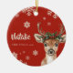 Trae el encanto de los bosques a tu árbol de vacaciones con este adorno navideño personalizado, parte de los cuentos de invierno encantados. Con un Navidad de ciervos con coronas y corona floral en un ambiente rojo festivo con delicadas copas de nieve, este adorno hace de este adorno un regalo para los niños, las familias o los amantes de los animales. Personalizar con nombre y año para crear una decoración única que será apreciada en los años venideros. Perfecto como talón de medias, etiqueta de regalo o herencia familiar ♡ Ver más en esta tienda aquí: https://www.zazzle.com/store/north_pole_boutique ♡