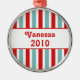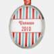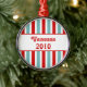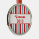 Fun y simple estribos de vacaciones Ronda de Navidad Ornamento con rayas rojas y azul claro. Este adorno de personalizable se convierte en un recuerdo instantáneo cuando se agrega un nombre y un saludo personalizado!