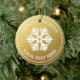 Celebre la temporada con este adorno de vacaciones personalizado con un rústico copo de nieve blanco frente a un falso fondo dorado. Agregue el texto de su personalizado para personalizar. Perfecto para una boda de invierno o un regalo especial.