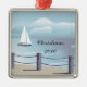 Ilustracion gráfico vectorial de una velera en el agua del artista/diseñador Charmaine Paulson en un adorno navideño premium. El adorno tiene (personalizable) texto "Viviendo el sueño".