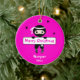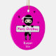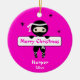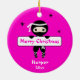 Este adorno de Navidad ninja personalizado presenta el ilustracion de un niño Cute ninja de color negro y rosa. Utiliza un tipo de letra fácil de leer y mucho espacio para agregar todo su mensaje único. Para cualquier necesidad de diseño especial, no dude en ponerse en contacto con el diseñador enviando un correo electrónico a choosehappystudio@yahoo.com
