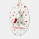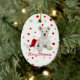 Un ornamento formado oval adaptable del árbol de navidad que ofrece una foto de un perrito lindo de Westie que se sienta en un gorra de santa, contra un blanco con rojo y fondo de las estrellas del oro. Las Felices Navidad de las palabras "se escriben debajo del perrito. Las mismas de la imagen características también en el dorso, pero ésta pueden ser suprimidas si usted prefiere añadir su propio navidad que saluda en lugar de otro. Esto haría un pequeño regalo estupendo para cualquier amigo cariñoso de Westie.