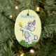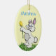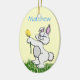 Un conejito adorable, "dibujado con el ratón", sobre una moqueta gris de flores, ofrece una fotografía recortada de un hermoso tulipán amarillo. El gráfico es maravilloso con un telón de fondo de susurro amarillo suave . ... . puede cambiar el color de fondo para adaptarlo a su propia estética y personalizarlo con el nombre de su bebé. Al revés se lee: "Primera Pascua del Bebé 2013". Asegúrese de que el año es correcto para su hijo. Se ofrecen varios tipos de formas, como un adorno ovalado o "en forma de huevo", de las que podrás elegir tu preferencia. También está orientado hacia la derecha.