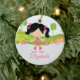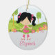 Anticuado y personalizó el ornamento patinador del navidad del pelo negro del patinador lindo del rodillo fijado en un fondo con los árboles y las flores. Un regalo del navidad de la maravilla seguro que se atesorará durante muchos años para venir.