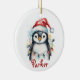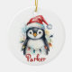 Celebra la temporada con este adorable adorable adorno de Navidad pingüino personalizado! Con un pingüino de acuarela con un sombrero Santa y envuelto en coloridas luces de vacaciones, este bigote de cerámica incluye el nombre de su hijo en un guión rojo festivo. Este adorno es una adición perfecta a cualquier árbol de Navidad y es un regalo dulce para los niños, nietos o la primera Navidad del bebé. ¡Una manera reconfortante de celebrar recuerdos de vacaciones en los próximos años!