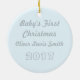 Ornamento colgante de "La primera Navidad del bebé". Gráfico espacial azul/gris pastoral con cohete, luna y estrellas. Personalizar el nombre y el año a seguir. Ideal para cumpleaños, bautizos o regalos de recién nacidos - bueno para colgar en el árbol de Navidad.