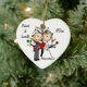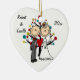 ¡Un ornamento de cerámica en forma de corazón bonito del recuerdo ofrece una figura marido y esposa del palillo que tienen su primer navidad junto como un par casado! Añada fácilmente sus nombres y fecha al año en curso en esta figura linda par del palillo con el ornamento del diseño del árbol de navidad. ¡Hace una gran idea para un regalo!