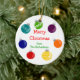 Características del este del árbol de navidad diseño personalizadas del ornamento siete diversos ornamentos del árbol de navidad del estilo de la bola en azul claro, azul marino, anaranjado, rojo, verde, y amarillo. Las bolas del ornamento del árbol de navidad se arreglan en un círculo en el frente de este ornamento del navidad. Los ornamentos del navidad están en un fondo blanco. En el centro de los ornamentos está el texto en la fuente roja y verde que se puede modificar para requisitos particulares para adaptarse a sus necesidades. ¡Este ornamento personalizado bola del árbol de navidad del navidad hace un gran regalo para los amigos, los vecinos, los compañeros de trabajo y los empleados! ¡También puede doblar como etiqueta del nombre del regalo de Navidad!!
