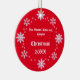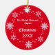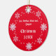 Cambie el color de fondo de este adorno a cualquier color que prefiera. El sencillo pero elegante guarnecido de árboles colectibles tiene un borde de copos de nieve. También se puede cambiar el estilo de letra y el tamaño. Otras ideas - podrías poner nombres de parejas y agregar el número de Navidades, por ejemplo, Lisa y Michael, Primera Navidad. La parte posterior de este ornamento se ha dejado en blanco para que se pueda personalizar aún más si se desea.