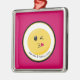 ¡Únete a la emoji loca! Personaliza este adorno con tu nombre y el que amas. Tiene un fondo central blanco con un anillo exterior delgado en amarillo y negro. La parte exterior del adorno es rosa brillante, fucsia. Hay una emoji soplando un beso que envía el amor. Mira los muchos otros ornamentos de emoji que ofrecemos en nuestra tienda.