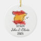 Un adorno de recuerdo de Bandera personalizado diseñado para celebrar su inolvidable viaje a España. Ya sea que viaje por trabajo, que disfrute de una escapada romántica o que participe en un programa de intercambio escolar, este adorno conmemora un momento especial que siempre apreciará. Celebra el año de tu viaje, ya sea como pareja casada, con familia o en una aventura en solitario, con nuestro adorno de souvenirs de bandera muy bien hecho. Este adorno de cerámica presenta un diseño de acuarela, mostrando la bandera del país de forma elegante y simplista. Es un regalo perfecto para la familia o los amigos, creando un recuerdo memorable para los años venideros. Diseño personalizado: Personalizar tu ornamento con un nombre de pila, un nombre de familia o un mensaje de personalizado. También puede añadir un año para crear un keepsake verdaderamente único. Uso versátil: ¡Más que sólo un adorno de árbol! Muestra este hermoso ornamento en tu hogar todo el año como un recordatorio duradero de tus vacaciones especiales. Nuestro ornamento de recuerdo de la bandera es más que una decoración, es un gran placer simbolizar tu viaje por explorar el mundo. Cada ornamento está diseñado meticulosamente para capturar la alegría y la emoción de sus vacaciones de ese año.