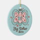 Nuestro ornamento de la HERMANA GRANDE de la MARIPOSA es una manera adorable de celebrar a la hermana grande en su familia. Perfeccione para los cumpleaños o su árbol de navidad. Ofreciendo una sonrisa mariposa rosada y azul. ¡También disponible en las camisetas, las bolsas de asas, las tazas y más! ¡Original de PinkInkArt!