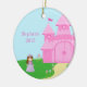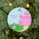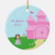 Este ornamento de cerámica formado círculo tiene un tema dulce de la princesa. Hay pequeña princesa linda con el pelo marrón que se coloca a la izquierda de su castillo de las rosas fuertes que esté a la derecha. En la tierra, hay porciones de flores azules y rosadas. En la izquierda, usted puede modificar el nombre y el año para requisitos particulares.