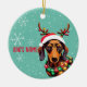 Perro lindo Navidad de perro Dachshund ilustracion lindo y un nombre personalizado de perro. Haz que este adorno sea personalizado y perfecto para tu árbol de Navidad.
