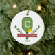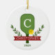 Ornamento de Navidad de Pickleball Personalizado. Conmemorar su año de pickleball jugando con un adorable adorno festivo. Personalice con un monograma inicial dentro de la paleta, y añada su nombre y año. Se muestra en una paleta clásica roja y verde con un pickleball amarillo estándar, pero TODOS LOS COLORES SON EDITABLES POR TI. Puede elegir nuevos colores para el remo, el pickleball, el holly + bayas, el banner y el texto. Asegúrese de hacer los mismos cambios al otro lado del adorno. © Kimbellished, LLC