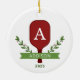 Ornamento de Navidad de Pickleball Personalizado. Conmemorar su año de pickleball jugando con un adorable adorno festivo. Personalice con un primer interior de la paleta, y añada su nombre y año. Se muestra en una paleta clásica roja y verde con un pickleball amarillo estándar, pero TODOS LOS COLORES SON EDITABLES POR TI. Puede elegir nuevos colores para el remo, el pickleball, el holly + bayas, el banner y el texto. Asegúrese de hacer los mismos cambios al otro lado del adorno. © Kimbellished, LLC