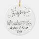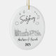 Un recuerdo de viaje personalizado diseñado para celebrar su viaje inolvidable. Ya sea que vayas a trabajar, disfrutes de una escapada romántica, o que participes en un programa de intercambio escolar, este adorno conmemora un momento especial que siempre apreciarás y que quieres recordar en los próximos años. Este vibrante paisaje adornado con paisajes urbanos, nubes de ensueño y estrellas brillantes. ¡Ideal tanto para viajeros como para turistas! Celebra el año que has viajado, ya sea como pareja casada, con familia, o en una aventura en solitario, con nuestro adorno de "Destino de Viajes" muy bien diseñado. Este keepsake personalizado es la adición perfecta a tu árbol de Navidad, sirviendo como un recordatorio duradero de una festividad que apreciarás en los próximos años. Diseño personalizado: Personalizar con su nombre o apellido para crear un conservador verdaderamente único. Regalo perfecto: Una elección significativa e inolvidable para amigos o familiares. Uso versátil: ¡Más que sólo un adorno de árbol! Muestre este hermoso recuerdo en su casa todo el año como un recordatorio duradero de sus vacaciones especiales. Nuestro ornamento de "Destino de Viajes" es más que una decoración. Es un aguijón sincero, que simboliza tu viaje de explorar el mundo. Cada ornamento está diseñado meticulosamente para capturar la alegría y la emoción de sus vacaciones de ese año.