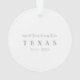 Un simple adorno con un esquema del estado de Texas y bellas letras para la palabra "hogar" colocadas en el centro. Personalice este adorno insertando su ciudad natal y su personalizar más adelante colocando el (3) H cerca de su ciudad natal en la imagen del estado de Texas. Estos son grandes regalos, keepsakes y perfectos para colecciones!