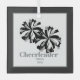 Este adorno de vidrio se muestra en un tamaño cuadrado con unas divertidas pompas y un texto de "animadora" en la parte delantera. Múltiples colores de negro, blanco y gris plateado. Personaliza con texto de nombre y fecha. Personalizar este elemento con esta plantilla o compre como se muestra.