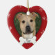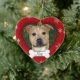 Un recuerdo y un regalo memorable del día de fiesta (navidad/Jánuca/Kwanzaa, etc.) para los amantes del perro ofrece un diseño rojo con copos de nieve blancos y un hueso para el nombre de mascota que puede ser movido, ser quitado o ser vuelto a clasificar según el tamaño si está deseado.