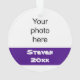 Este ornamento del fútbol es perfecto para cualquier futbolista o coche. Modifique lo con el nombre de la escuela en el frente y el nombre del jugador y la foto para requisitos particulares en la parte posterior. Es verdad un recuerdo que será acariciado para siempre. Es el regalo personalizado perfecto a dar en cualquier momento de año.