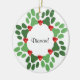Personalice un ornamento del navidad para su mascota especial. Gráficos bilaterales con una guirnalda verde de la impresión de la pata adornada con las bayas rojas brillantes. Usted puede personalizar con el su nombre de mascota. Un regalo perfecto para el amante del perro. O personalice esto como regalo a su veterinario, groomer del perro o canguro del mascota.