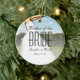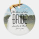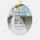 Ornamento hermoso del recuerdo que ofrece una foto estilizada de una novia en un prado contra un cielo azul. Texto modificado para requisitos particulares para el que está de un regalo bueno para su banquete de boda. Ahorre las invitaciones de la fecha, gracias las notas, casando los organizadores y los sellos también disponibles. ¡Original de PinkInkArt!