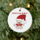 Un bebé con un gorro lleno de texto rojo y rojo que dice "Navidades bebé" en un adorno que se puede personalizar fácilmente para la primera Navidad del bebé.